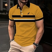 More information about Men's Horizontal Stripes Rugby Polo Short Sleeve Polo Shirts Collared Shirts Business Casual School Outdoor Athleisure Daily Wear 3D Print Summer Spring Fall White Yellow Pink