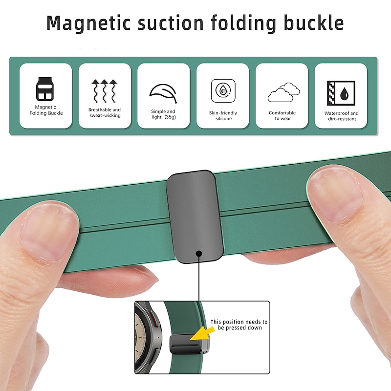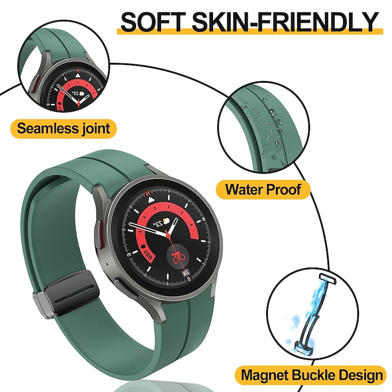 More information about Watch Band for Samsung Galaxy Watch 7/6/5/4 40/44mm, Watch 5 Pro 45mm, Watch 6 Classic 43/47mm, Watch 4 Classic 42/46mm Silicone Replacement Strap Magnetic Clasp Waterproof Adjustable Sport Band