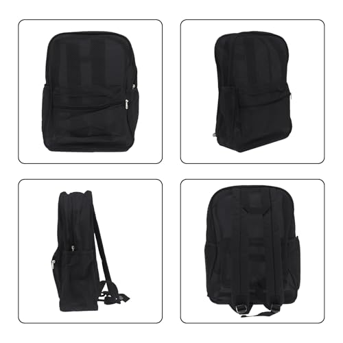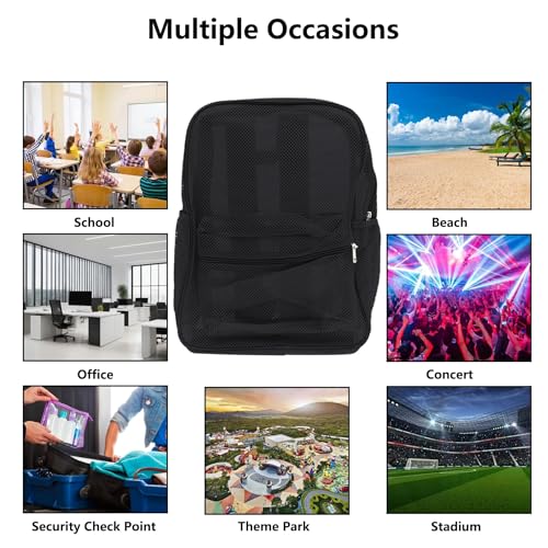 Heavy Duty Mesh Backpacks, Transparent See Through Shoulder Bag with Padded Shoulder Straps for Swimming,Beach(Black)