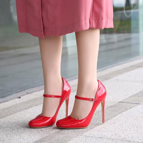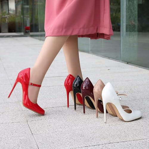 ChaiRong Zhou Women Fashion High Heels Pointed Toe Ankle Strap Pumps Stiletto Patent Leather Dress Shoes for Wedding Party Dance 4