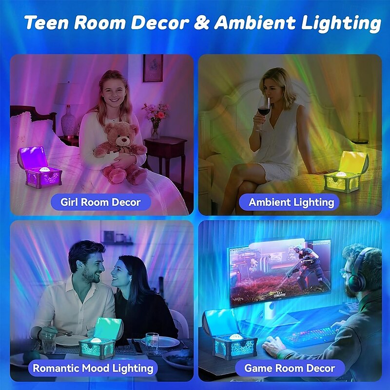 $58.99 - Northern Lights Projector 7 Colors Treasure Chest Night Light Aurora Lights Projector with 8 Effects & Remote Dimmable Galaxy Light Ambient Lighting for Bedroom Gifts for Kids Teen Women 2025. Shop for cheap Star Galaxy Projector Lights online? Buy at lightinthebox.com on sale today!