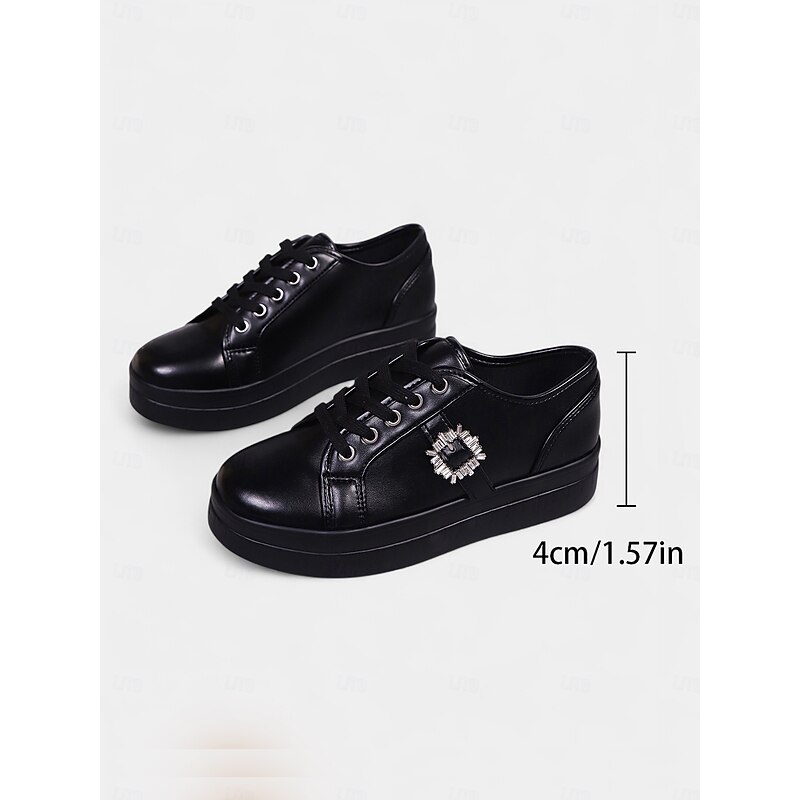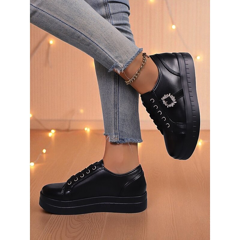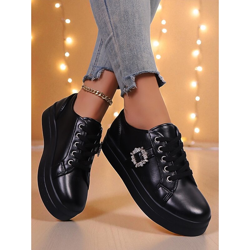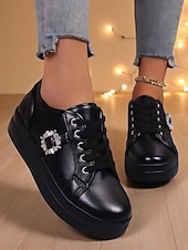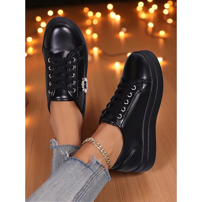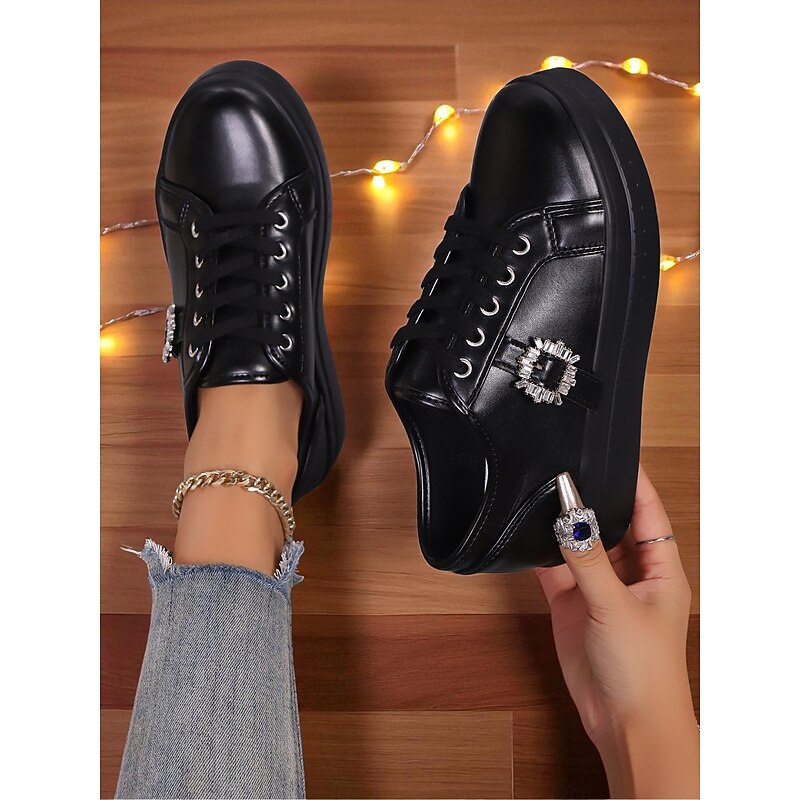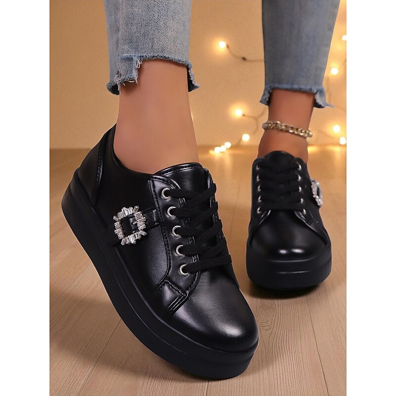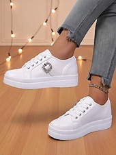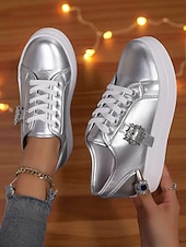 More information about Women's Silver Metallic Lace-Up Sneakers with Rhinestone Buckle - Fashion Casual Shoes for Nightlife Parties and Club Outfits