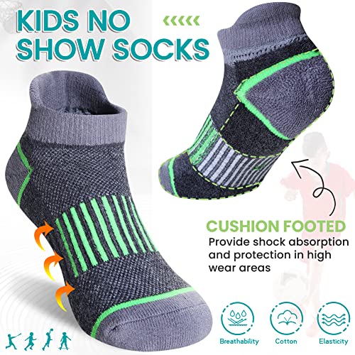 • SIZE - Childrens no show socks have 3 sizes to choose, 5-8 Years, 9-12 Years, 13-15 years. These premium athletic socks are perfect for boys everyday wear,the best choice for essential items during sports meet, running, jumping, hiking, walking, riding, school activity and everyday wear.