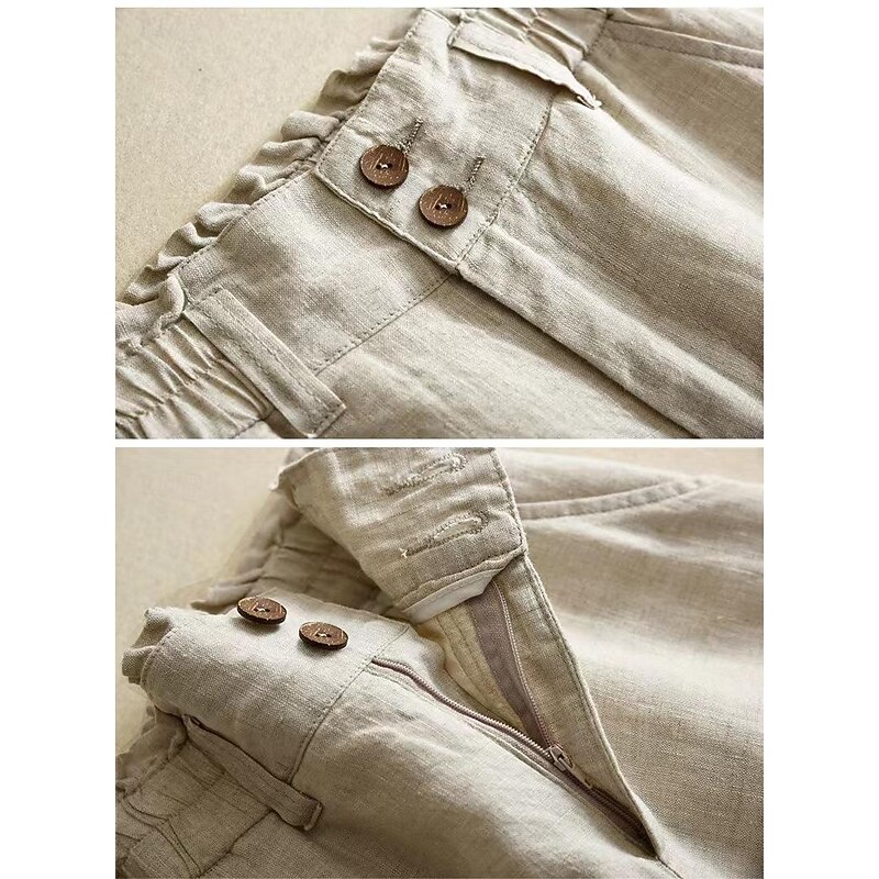 More information about Women's Cotton Linen Pants Pants Trousers Fashion Long Plain Side Pockets Breathability Comfortable Inelastic Casual Daily Black White Beige Spring & Summer Regular Fit