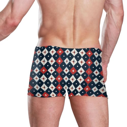Red Blue Diamond Grid Mens Swim Trunk Swimwear Bathing Suit Swim Brief Square Leg Board Short S B0404777 5