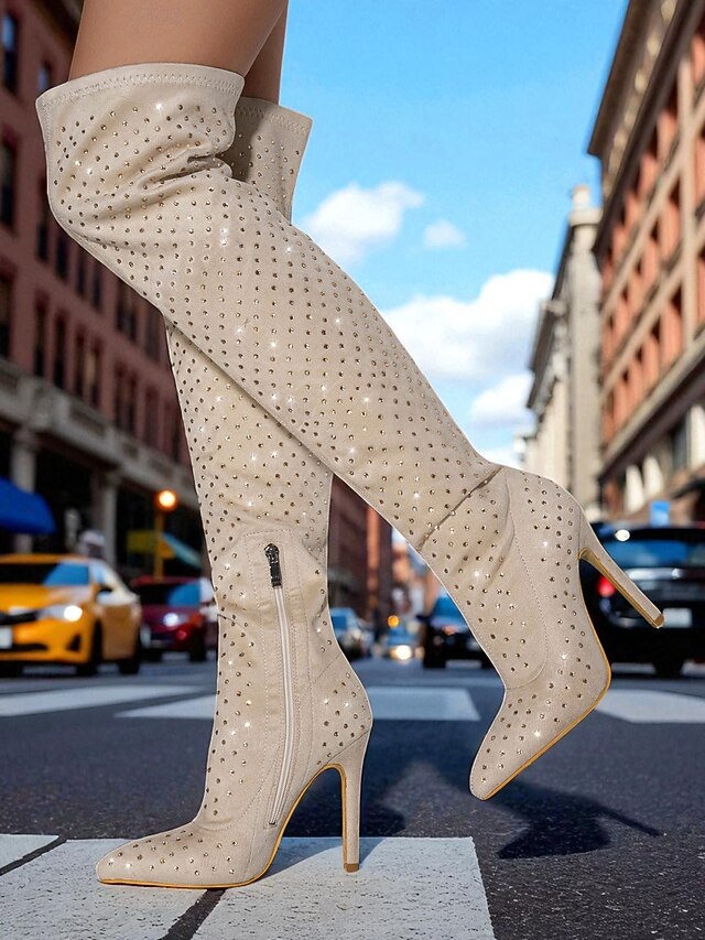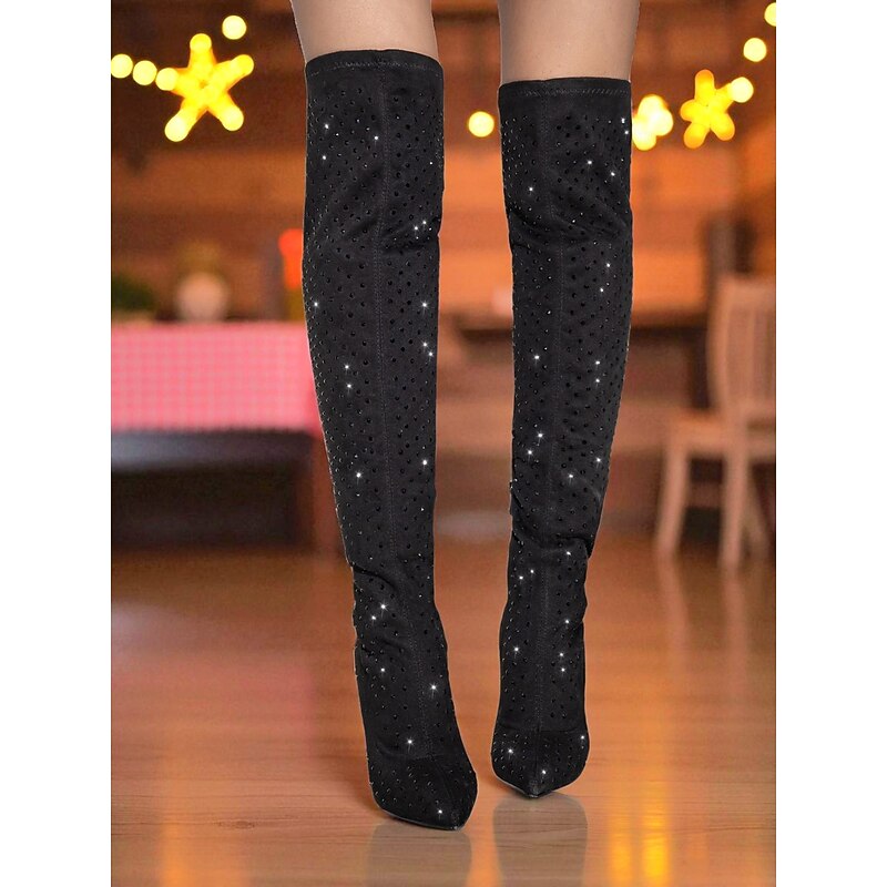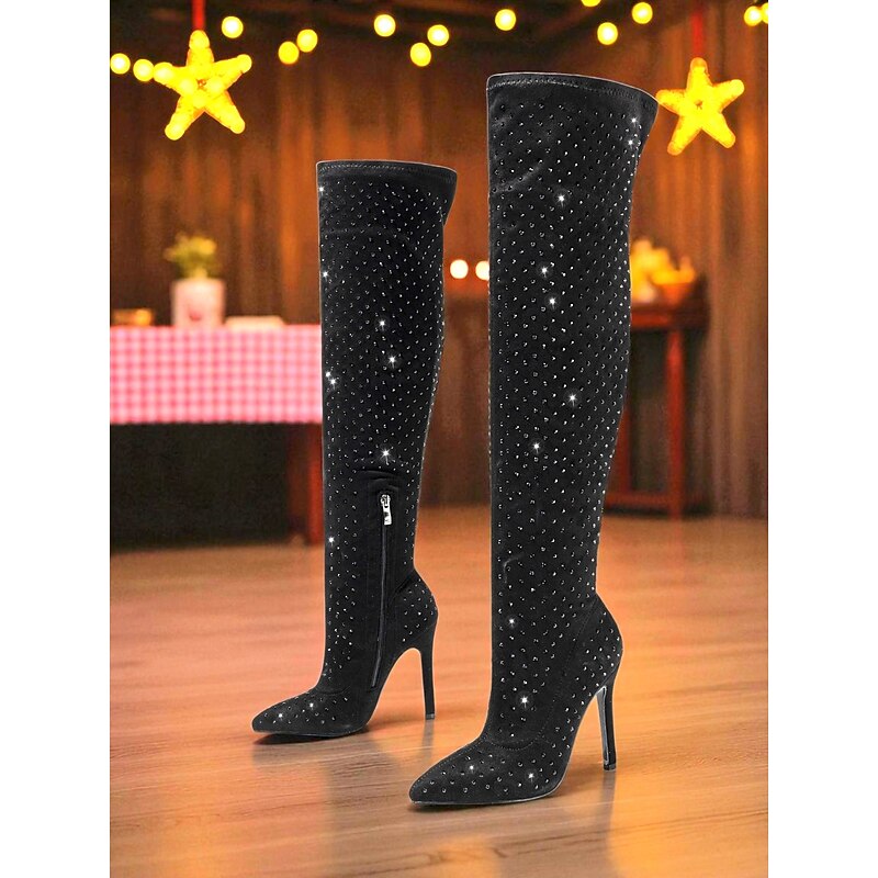 HOT ! Women's Rhinestone Over-the-Knee High Heel Boots - Sparkly Pointed Toe Party Footwear for Nightlife and Club Outfits
