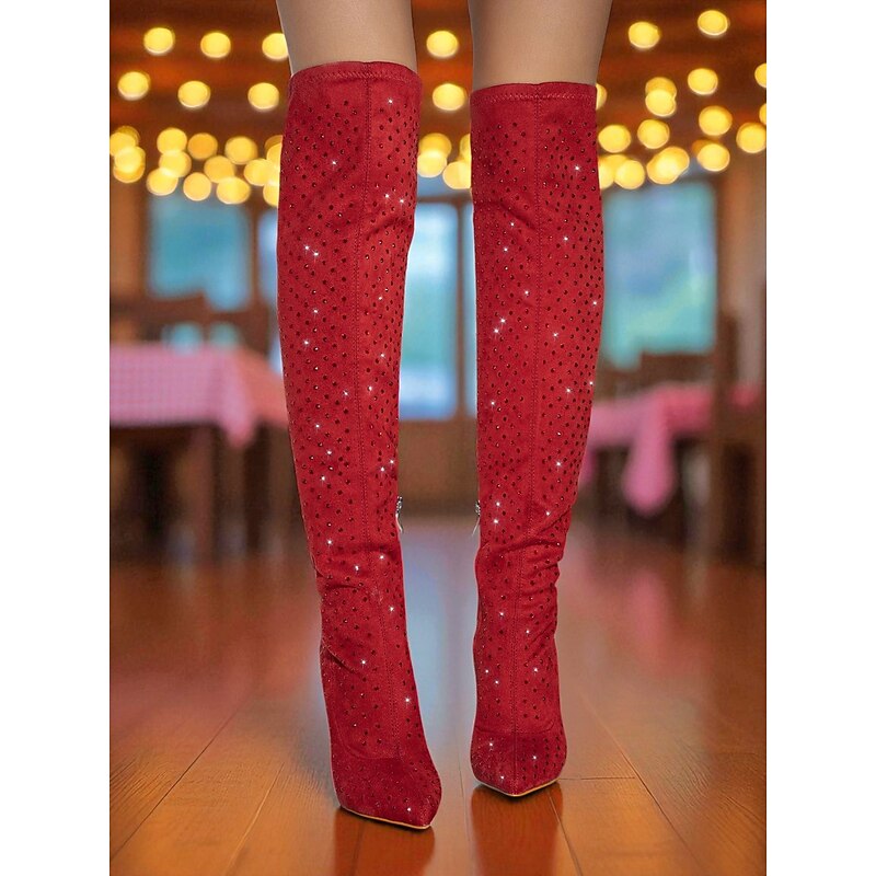 Women's Rhinestone Over-the-Knee High Heel Boots - Sparkly Pointed Toe Party Footwear for Nightlife and Club Outfits 7