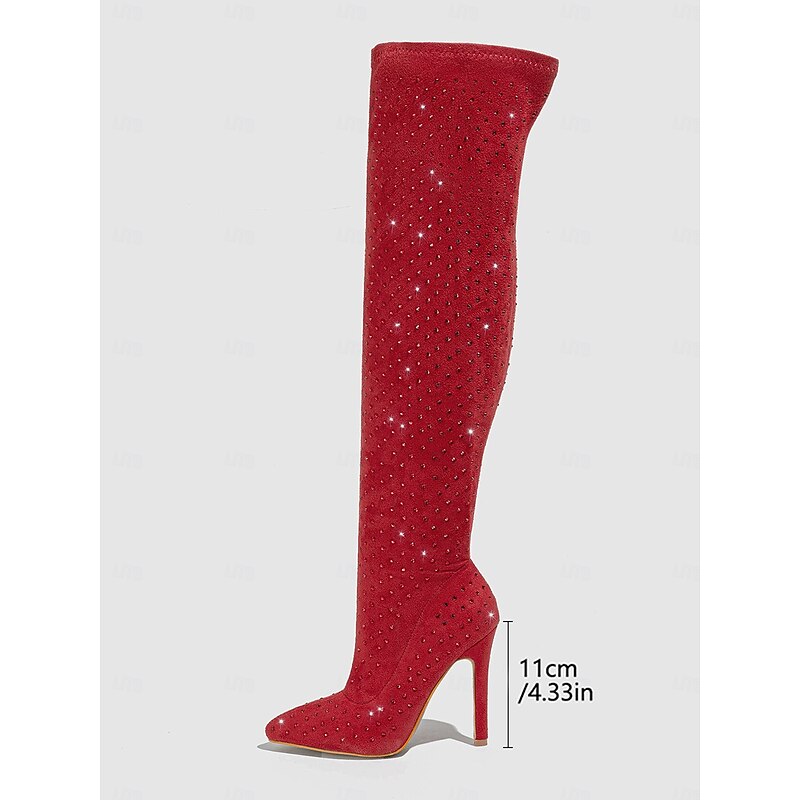 Women's Rhinestone Over-the-Knee High Heel Boots - Sparkly Pointed Toe Party Footwear for Nightlife and Club Outfits 17