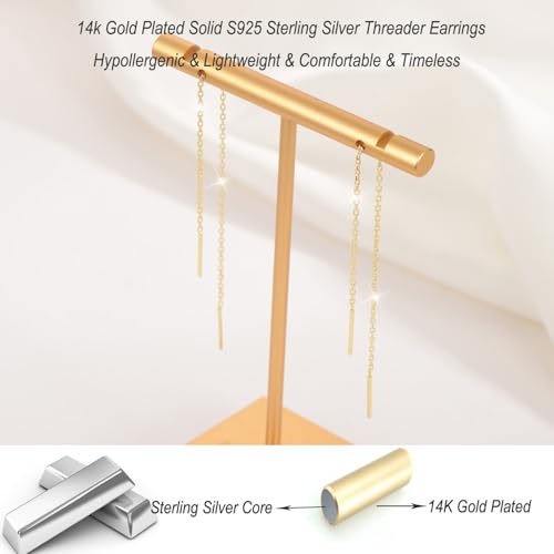 Sterling Silver Threader Chain Dangle Earrings,Versatile & Comfortable Hypoallergenic Silver Earrings Gold Plated 4.8 Inches 5