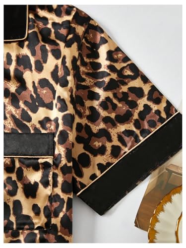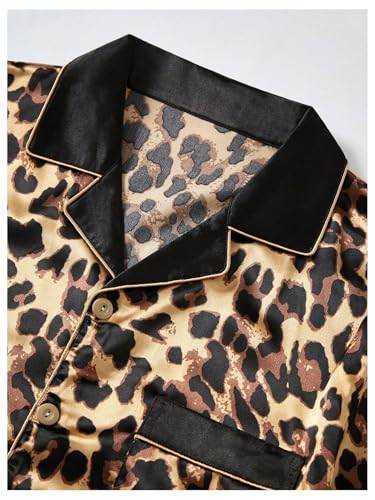 WDIRARA Men's 2 Piece Leopard Print Satin Pajama Set Button Down Short Sleeve Shorts Loungewear Sets 3
