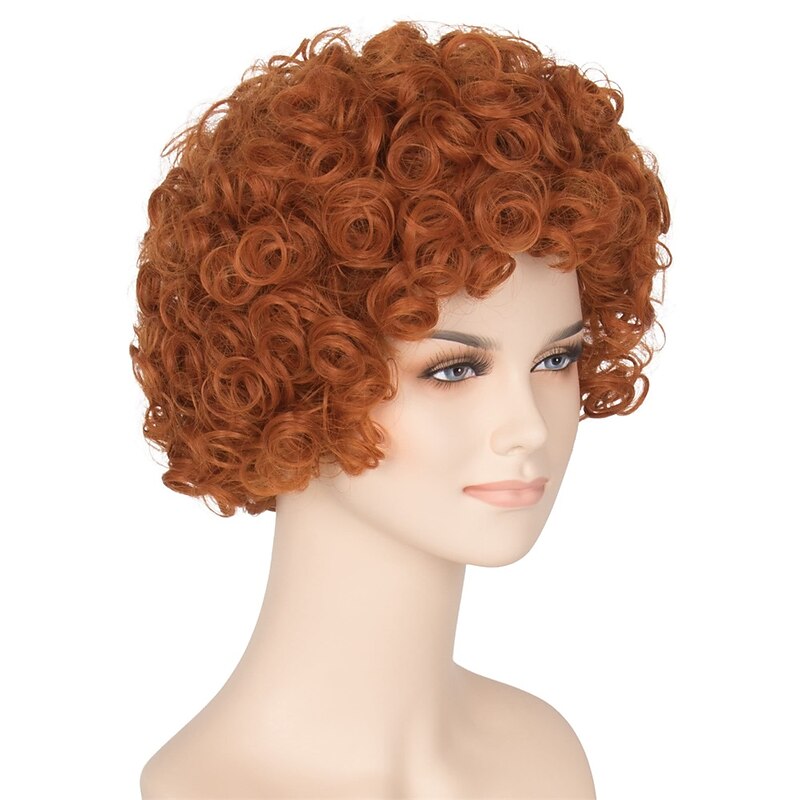 Adult Wig Short Curly Reddish Orange Wig Carnival Cosplay Costume Wig Halloween Wigs 6