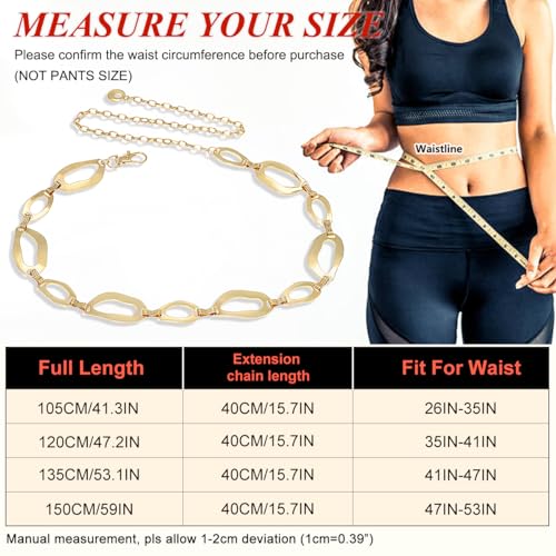 • Design: The square metal waist chain has a clean and elegant design with texture and simplicity. As a decoration for your outfit and this chain will enhance the sense of your dress up, and it will upgrade and add a glamorous and elegant look to your outfits
