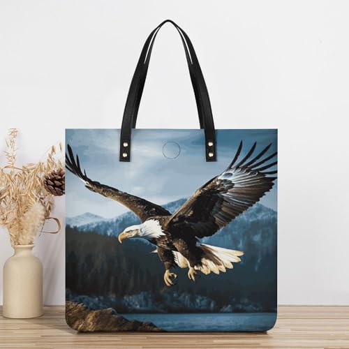 Eagle at Hunting Work Tote Bag for Women Leather Shoulder Bag with Magnetic Buckle Purse And Handbags 1