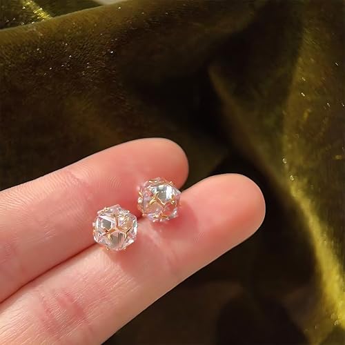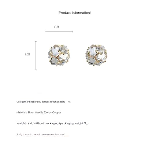 HOT ! 14K Gold Plated Cubic Zirconia Stud Earrings for Women, 0.4 in (10 mm) Geometric 3D-Faceted CZ, 925 Sterling Silver Posts