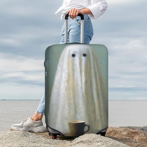 Ghost And Coffee Cup Elastic Travel Luggage Covers Dustproof Scratch-Resistant Suitcase Protector Fit 22-24 Inch 6