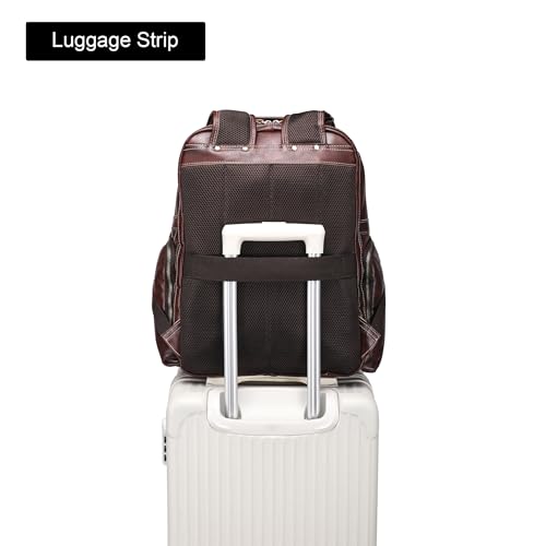 Brief content visible, double tap to read full content. Full content visible, double tap to read brief content. Bundles with this item Previous page Leather Laptop Bag and Leather Travel Passport Wallet -12% $166.99 Was: $189.98 Next page See all bundlesDimensions: 17(H) x 14.2(L) x 7.5(W) / 43cm(H) x 36cm(L) x 19cm(W), Weight: 3.85 LBS/1.75 KG, Shoulder straps: 15- 33 / 38-84cm, Large capacity: 30L.Premium Quality: This leather laptop backpack is made of waxed full grain high-quality cowhide leather (genuine leather thickness 2.0mm). This vintage-inspired men's shoulder bag exudes timeless elegance and durability. Breathable padding on the back and shoulder straps with this business backpack for men.Multi-Pockets Design: The leather travel backpack for men has 30L large capacity can carry on 17.3 inch laptop, it also has 3 main compartments, 3 front zipper pockets, 2 side pockets fits water bottle/umbrella/mini iPad, 2 glasses strap and 1 luggage strap.Luggage Strap Design: As a men leather shoulder bag, it has 1 luggage strap on the back for attaching to the top of the suitcase, stack this large capacity backpack on your wheeled luggage to free your shoulder or hands while carrying heavier stuff to make your traveling more convenient.One Year Warranty, please contact us if there is any question about this genuine leather backpack, just feel free to contact us, we will reply you with solution in 1 business day. superb for everyday use. superior materials and excellent craftsmanship ensure long-lasting durability.