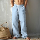 More information about Men's Coconut Tree Hawaiian Trousers Casual Pants Mid Waist Drawstring Elastic Waist Vintage Retro Outdoor Vacation Holiday Straight Leg Trousers Summer Spring Fall 3D Print Blue khaki