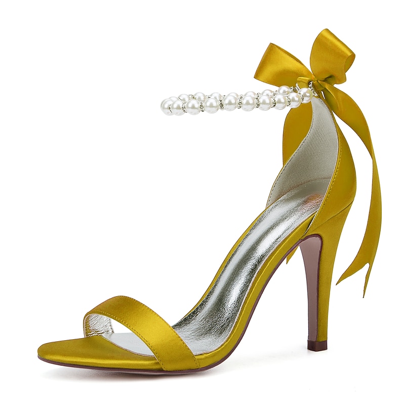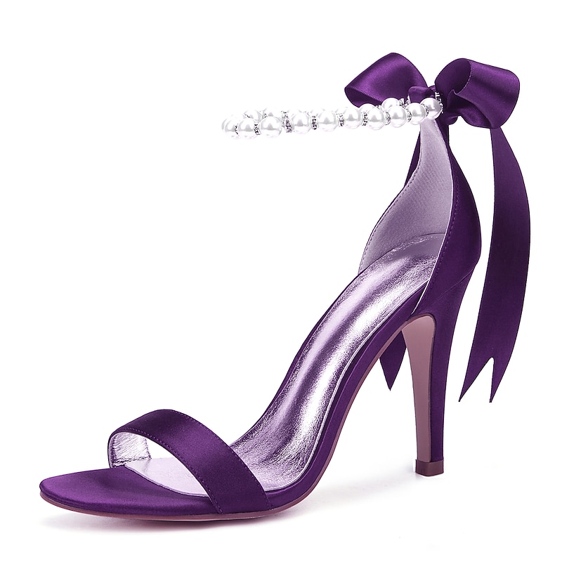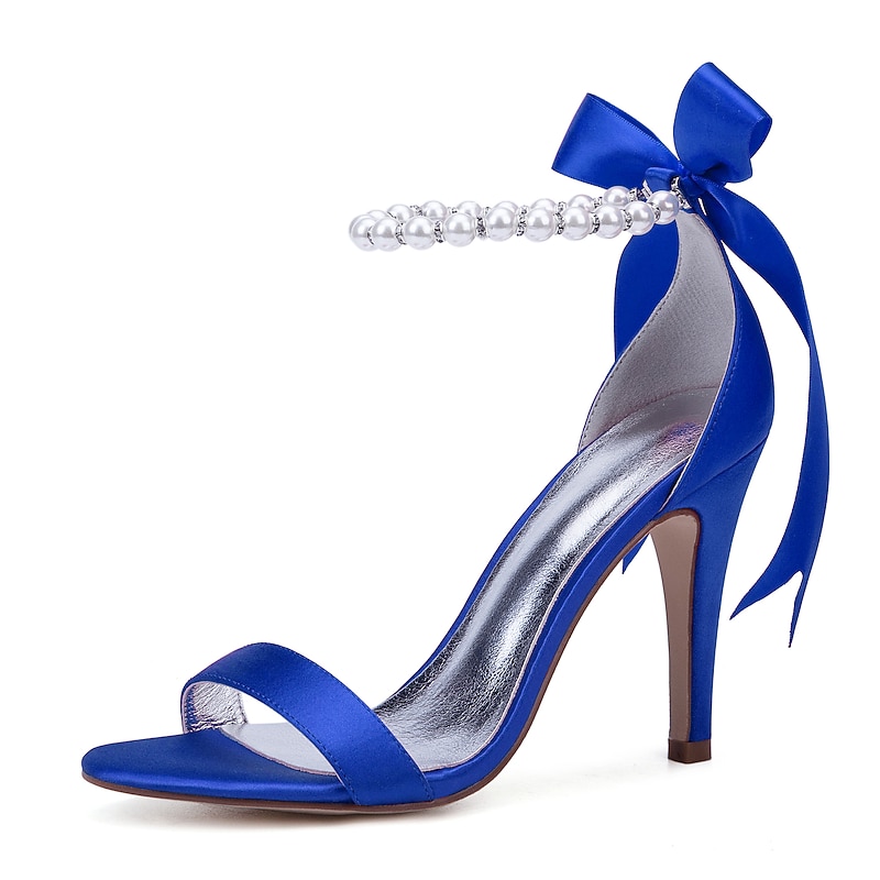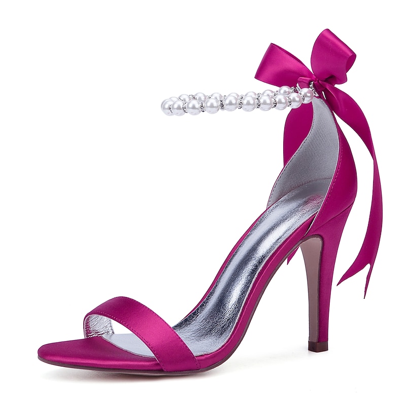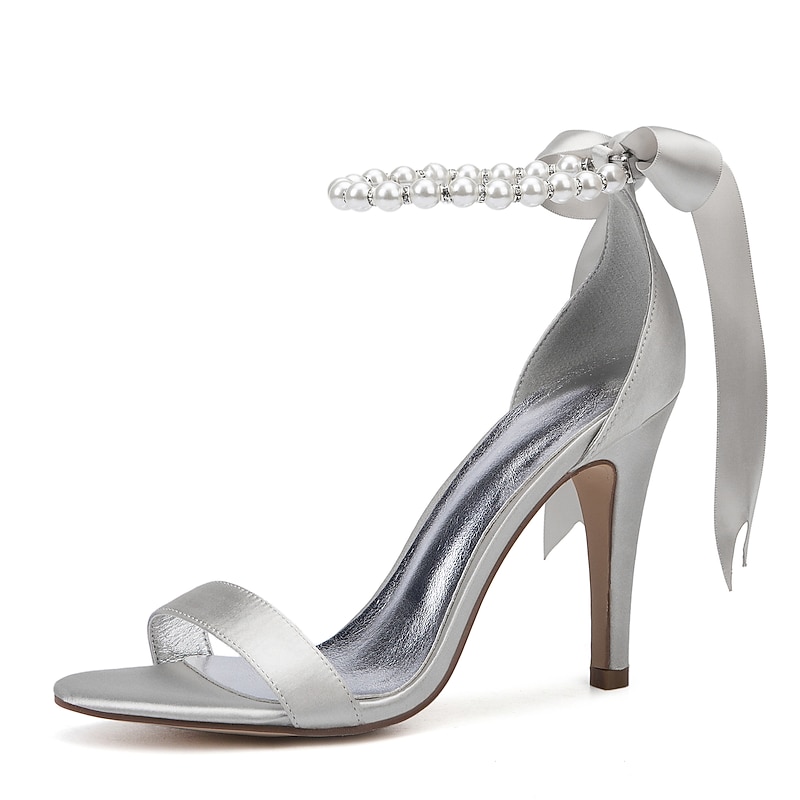 Highlights [Fabric] : Crafted from smooth satin, these high heel sandals offer a chic and shiny appearance, ensuring a luxurious feel while maintaining comfort with a metallic silver lining. [Silhouette] : Showcasing a classic open-toe design with a single strap across the toe, these sandals highlight simplicity and grace, complemented by a sleek stiletto heel for an elevated look. [Design Highlights] : The ankle strap is adorned with delicate imitation pearls, adding refinement and glamour, while the satin ribbon is tied into a graceful bow. This elegant detail enhances the sophisticated style, making the sandals a standout choice. [Occasions] : Perfect for weddings, special occasions, and evening events, these sandals provide an elegant and up-to-date option, making any outfit a chic and fashionable statement. [Size Information] : Available in a variety of sizes to accommodate different needs, from US5.5 to US10.5, ensuring a perfect fit for a wide range of customers.