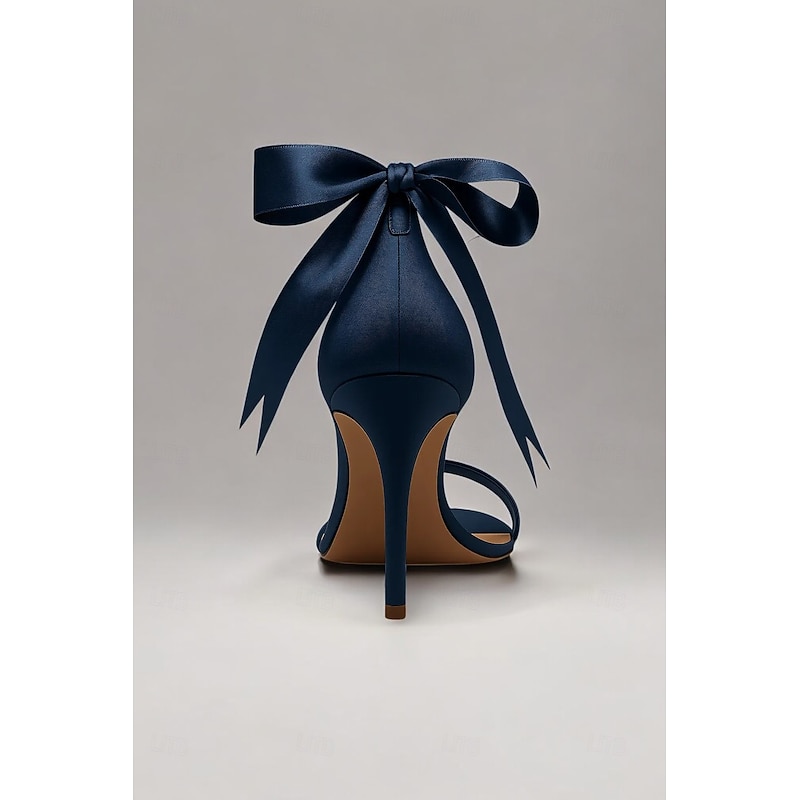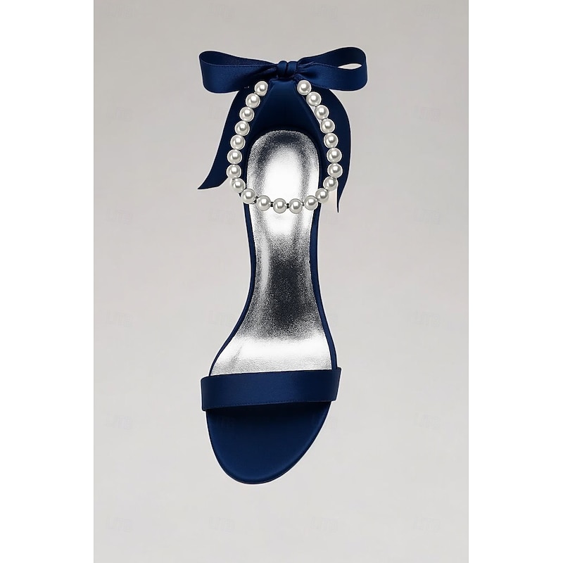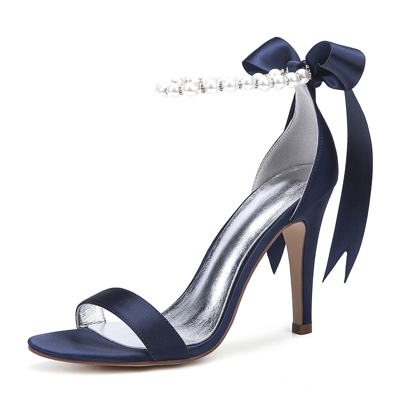 sought-after ! Women's Navy Satin High Heel Sandals – Pearl Ankle Strap Stiletto Heels with Ribbon Bow for Weddings and Elegant Cocktail Party and Special Occasions