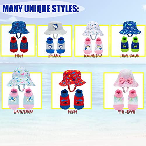 Fabric type: 100% CottonCare instructions: Hand Wash OnlyOrigin: ImportedClosure type: DrawstringSUPER CUTE SET: Dress up your little one adorable when going out with family or friends.COMFORT AND QUALITY: Featuring a 100% cotton comfy floppy hat, which stays put with chin strap self-stick fabric closure. Washes super well.SUN PROTECTION: UPF50+ Bucket hat will protect little heads from the sun’s harmful rays in cool fashion.2-PIECE SET: Set includes fun designed hat and matching booties. The set you have always been looking for!NON SLIP SOLE: Excellent non-slip soles so that the baby's feet are comfy and supported.FUN SUN DESIGNS: Choose from sweet unicorn, red fish designs or anything in between! Comes in many charming sweet designs.