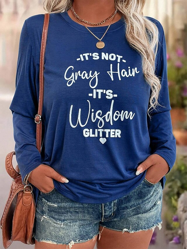 HOT ! Women's Plus Size Tops T Shirt Geometry Print Long Sleeve Crew Neck Casual Daily Polyester Fall Winter Black Blue