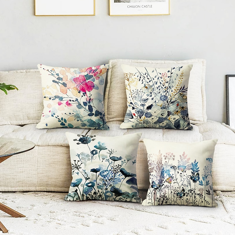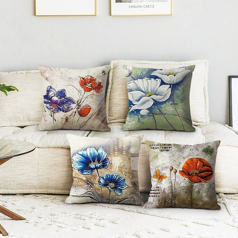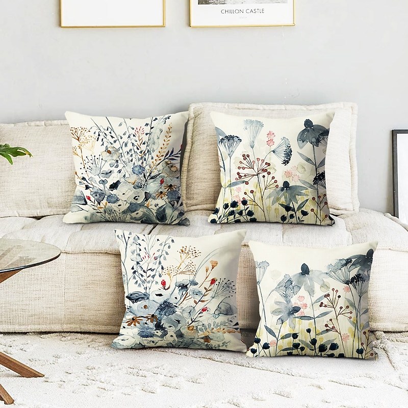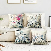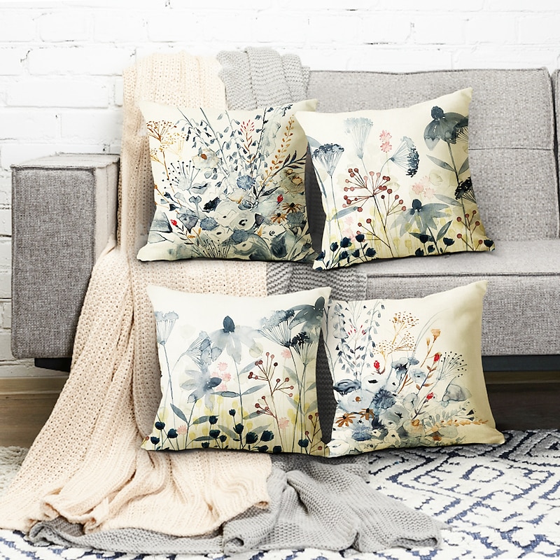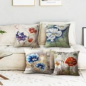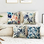 Vintage Floral Double Side Cushion Cover 4PC Soft Decorative Square Throw Pillow Cover Cushion Case Pillowcase for Bedroom Livingroom Superior Quality Machine Washable Indoor Cushion for Sofa Couch Bed Chair