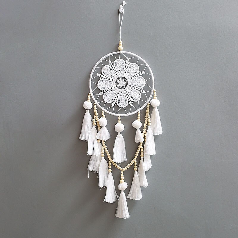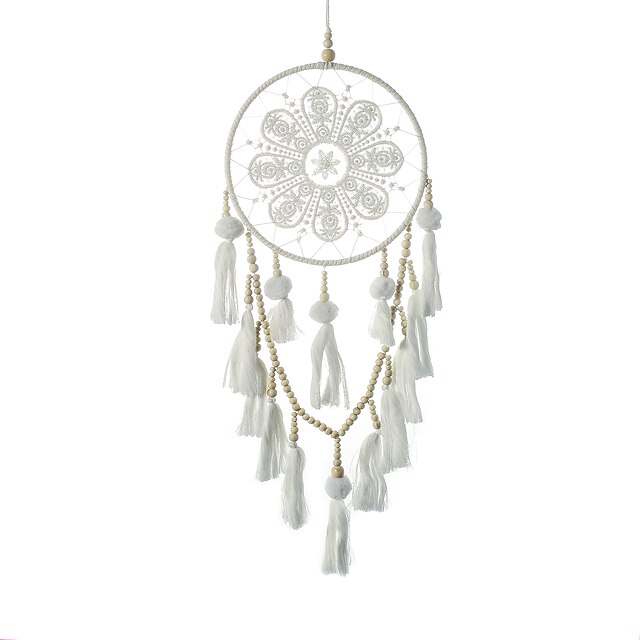 White Dream Catcher Handmade Gift with One-ring Feather Wall Hanging Decor Art Wind Chimes Boho Style Home Decor
