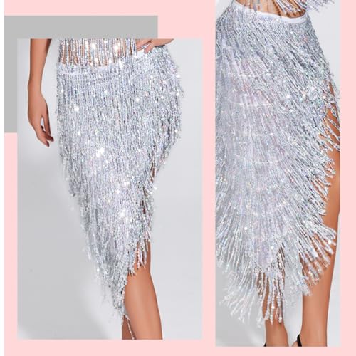 Women Sequins Tassels Bellydance Hip Scarf Long Belly Dance Dancing Skirts Wrap for 4