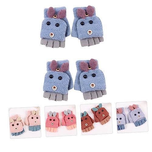 2pairs Half Finger Cartoon Dog Gloves for Boys and Girls Warm Knitted Gloves Cover for Writing Random Comfortable and Stylish for Boy Girl 2
