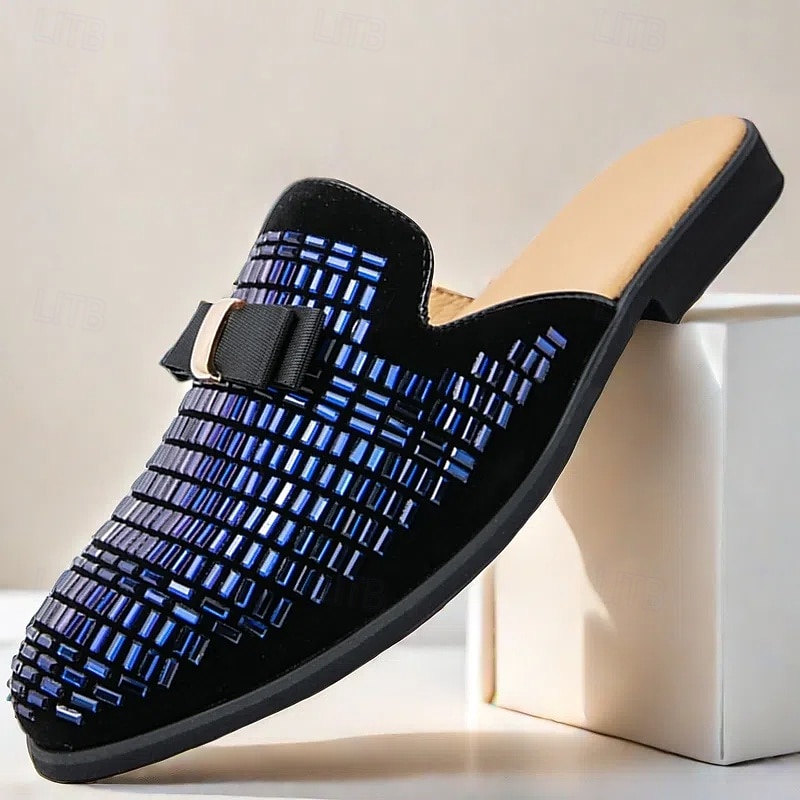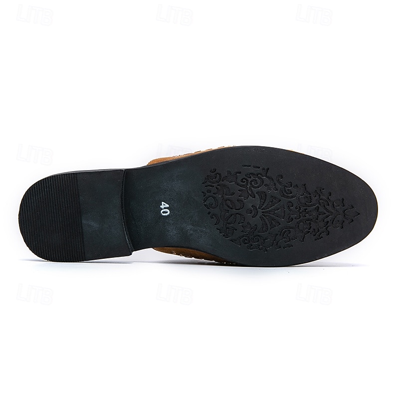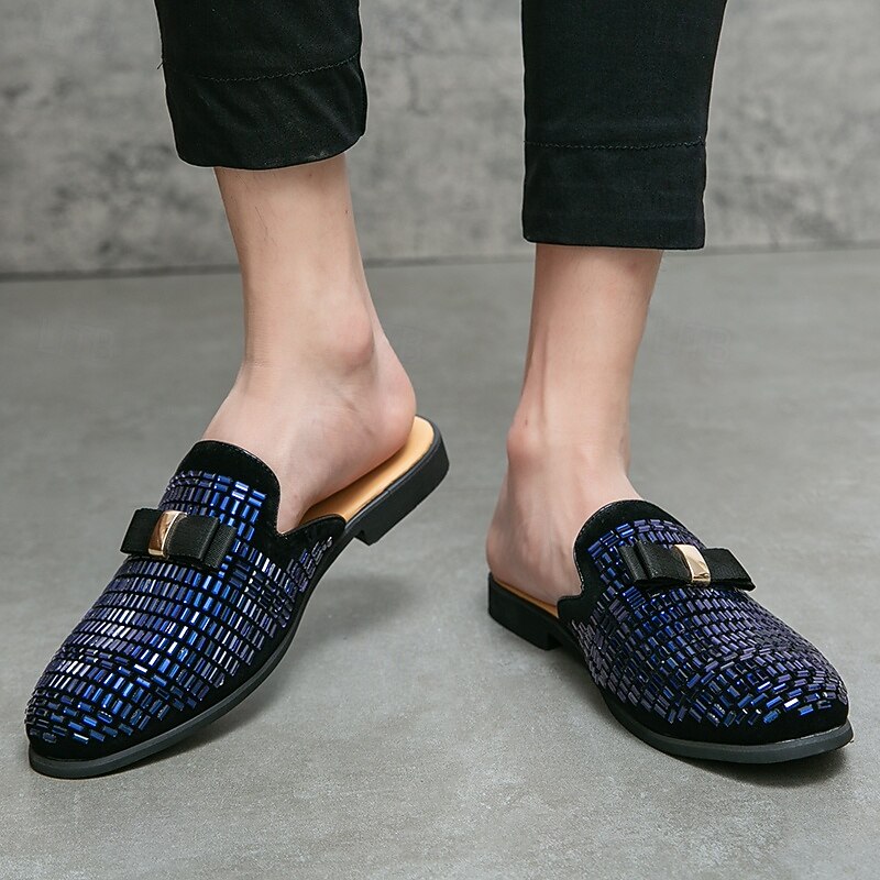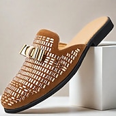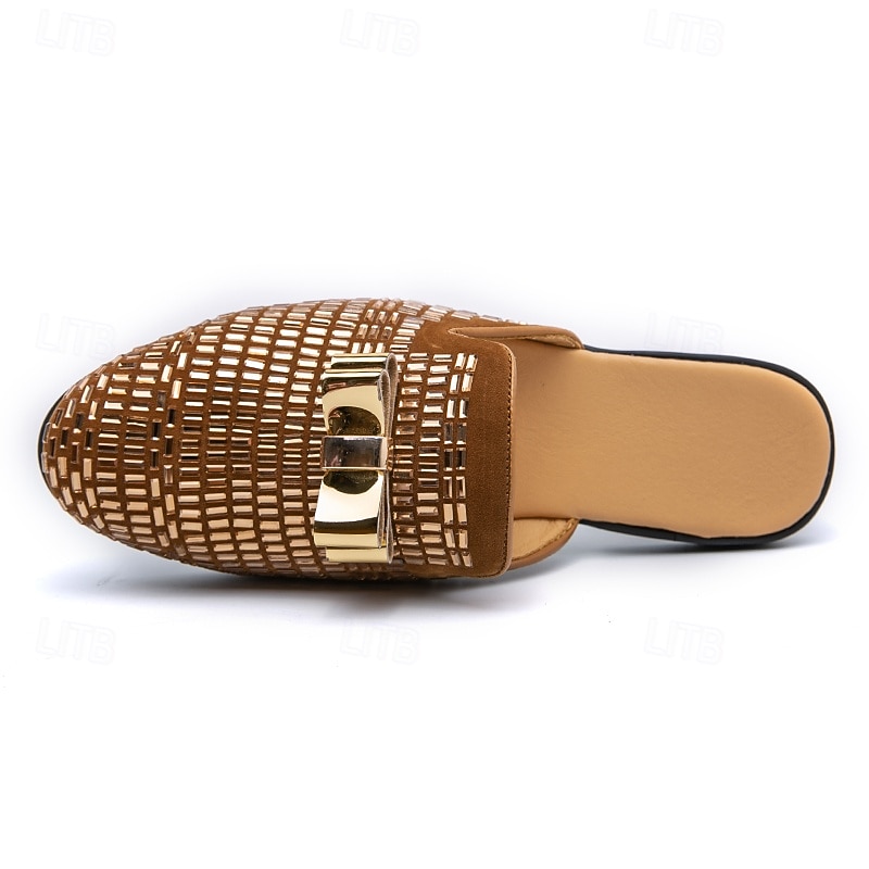 More information about Men's Brown Suede Slip-On Mules with Metallic Gold Studded Design and Bow Accent – Stylish Casual Loafers for Everyday Wear and Special Occasions