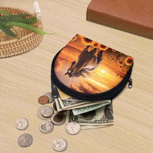 Dolyues Horse Sunset Coin Purse Pouch for Women Sunflower Print Change Pouch Card Holder Small Coin Bag Zipper Pocket Mini Change Wallets 7
