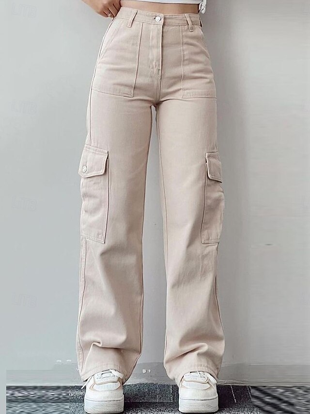 HOT ! Women's Cargo Pants Chinos Fashion Streetwear Full Length High Waist Plain Pocket Comfy Soft Comfortable Micro-elastic Outdoor Street White Green Apricot Spring & Fall Regular Fit