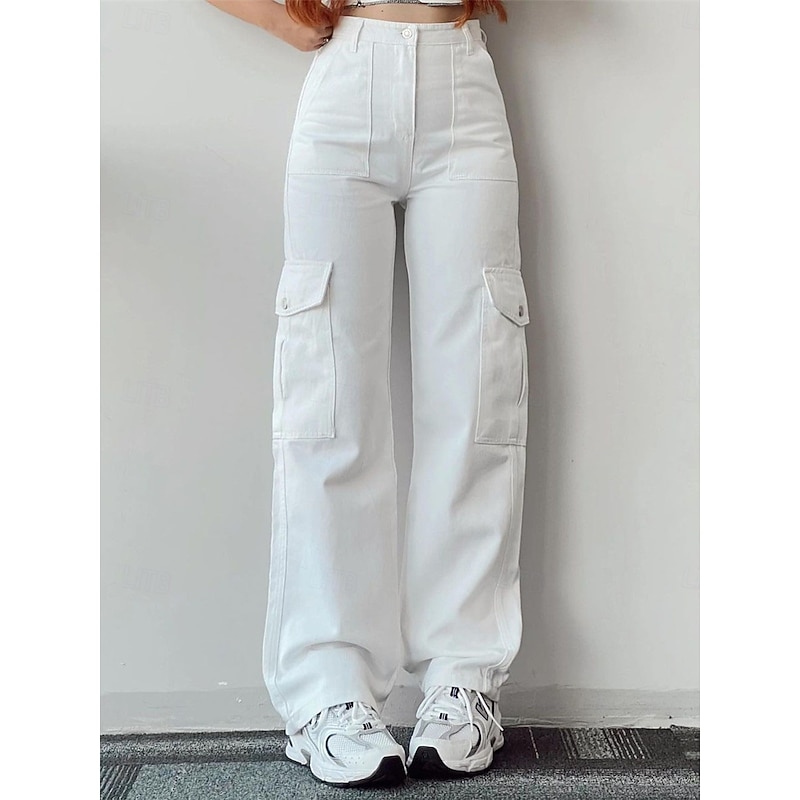 More information about Women's Cargo Pants Chinos Fashion Streetwear Full Length High Waist Plain Pocket Comfy Soft Comfortable Micro-elastic Outdoor Street White Green Apricot Spring & Fall Regular Fit
