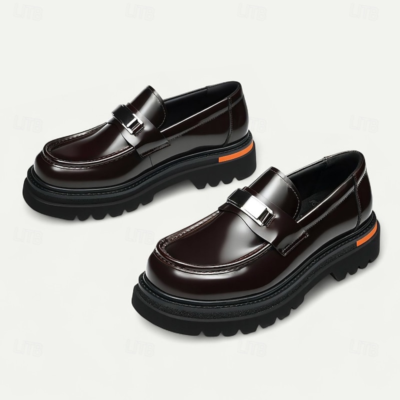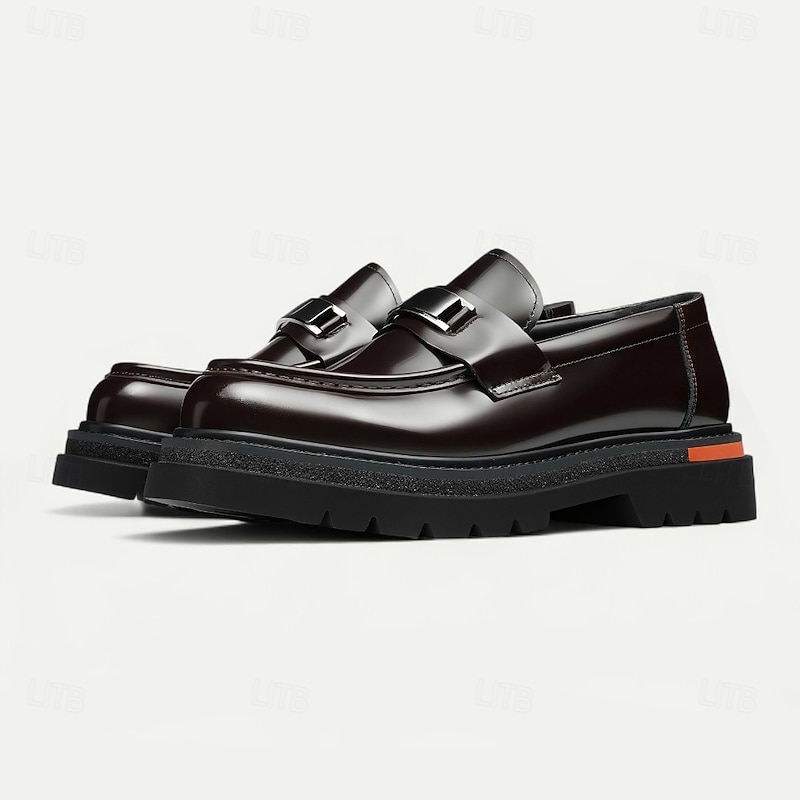 HOT ! Men's Brown Leather Penny Loafers with Metal Buckle – Classic Dress Shoes for Business, Formal Events and Office Wear