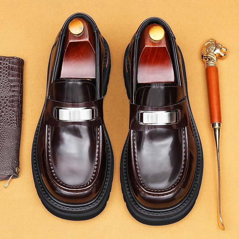 Men's Brown Leather Penny Loafers with Metal Buckle – Classic Dress Shoes for Business, Formal Events  and Office Wear 25