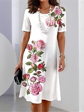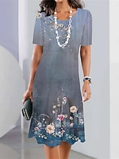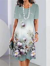 More information about Women's Floral Print Crew Neck Mini Dress Stylish Formal Cocktail Party Short Sleeve Summer