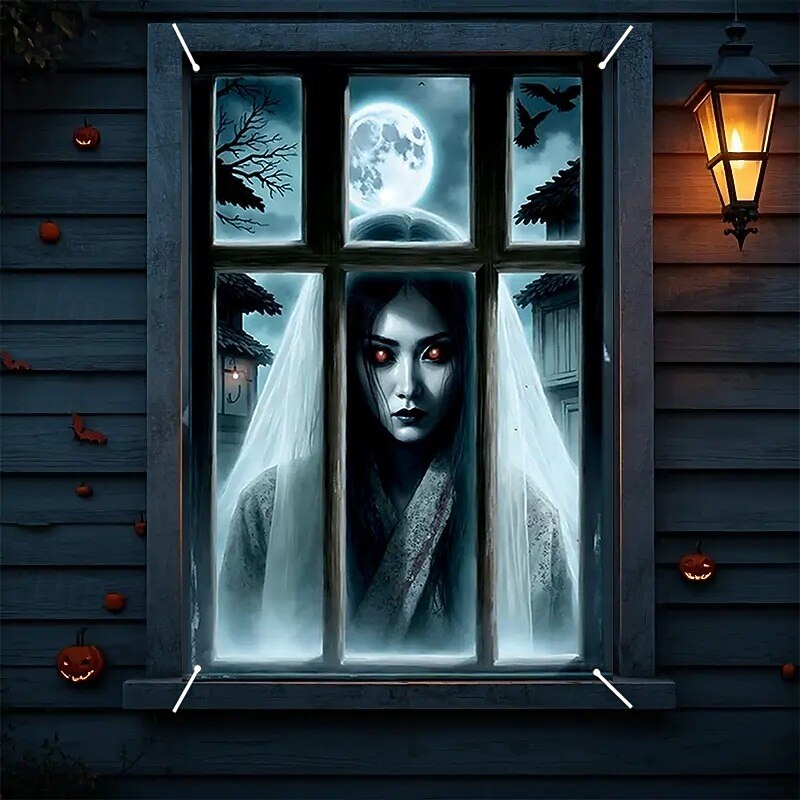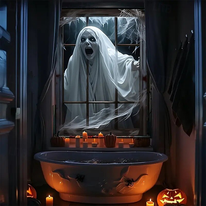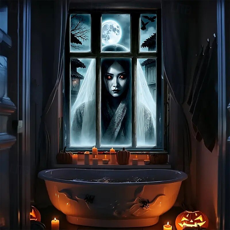 $15.99 - Halloween Window Curtain Creepy Ghost Woman Behind Frosted Glass, Horror Door Cover, Window cover, Wall Tapestry for 2025 Halloween Haunted House Spooky Home Decoration 2025. Shop for cheap Halloween Door Covers online? Buy at lightinthebox.com on sale today!