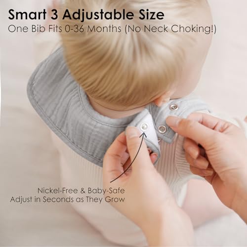 • Easy Side Fastening with Adjustable Snaps: Our baby bibs for drooling and teething come with a convenient side snap closure, making them easy to put on and take off without pulling over your baby’s head. The two adjustable snaps ensure a comfortable and secure fit as your baby grows