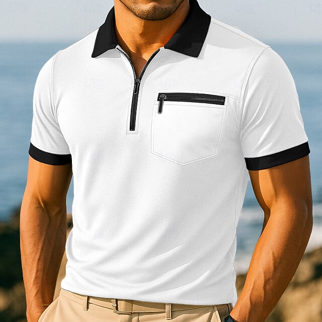 More information about Men's Zip Polo Golf Shirt Vacation Casual Lapel Quarter Zip Short Sleeve Fashion Modern Solid Color Zipper Summer Spring All Seasons Regular Fit White Burgundy Navy Blue Zip Polo