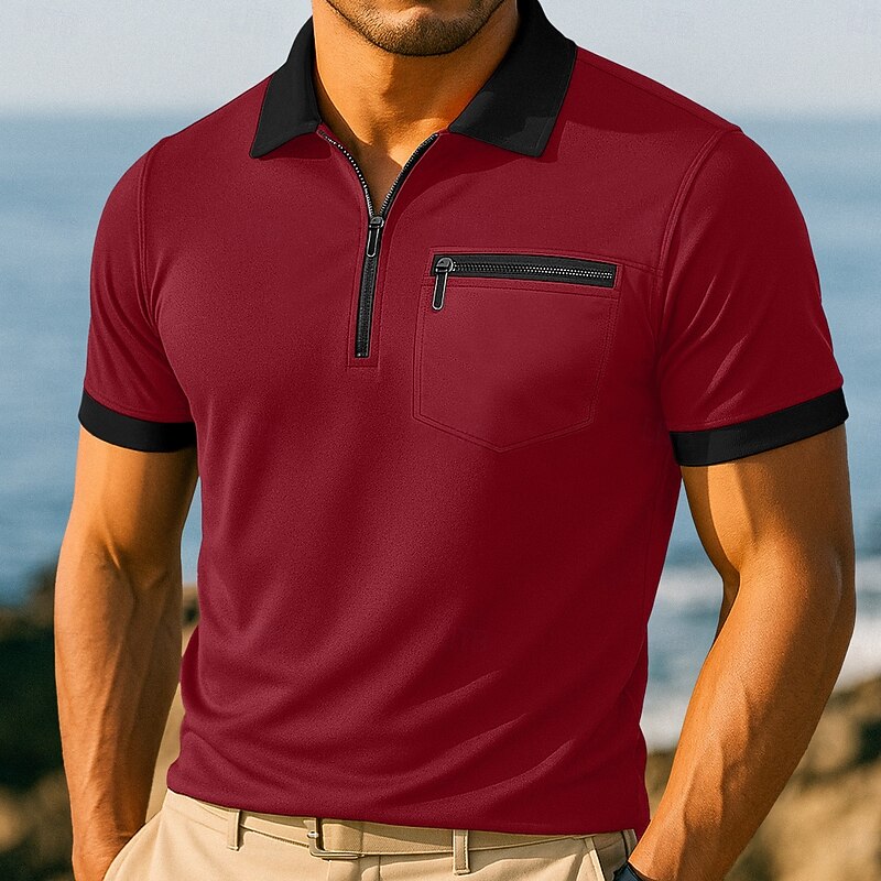 Men's Zip Polo Golf Shirt Vacation Casual Lapel Quarter Zip Short Sleeve Fashion Modern Solid Color Zipper Summer Spring All Seasons Regular Fit White Burgundy Navy Blue Zip Polo 6
