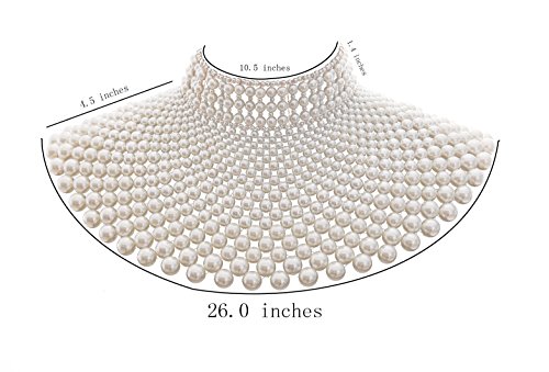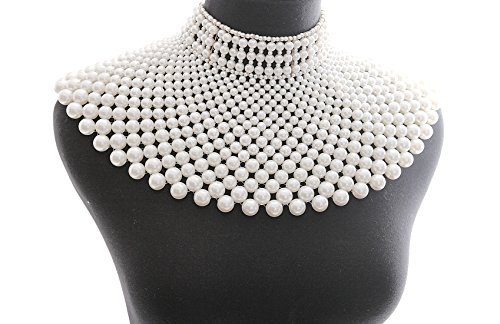 • This large elegant pearl collar necklace body chain consists of more than 900 difference size pearl beads ranging from 2mm to 12mm. Any time if you want a capelet to attend parties, this will help to be the focus in it and high light your image.