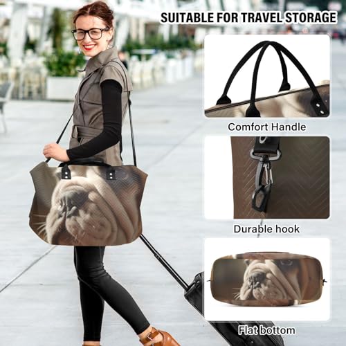 HOT ! Large Travel Duffel Bag, Bulldog Close Up Sports Tote Gym Bag, Shoulder Weekender Overnight Bag for Women Men, Carry On Luggage with Toiletry Bags