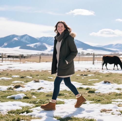 • Sheepskin Boots Temperature Regulating: Womens snow boots with fur STAY WARM in sheepskin lining fibers can absorb mosture, adjusts to your body temperature making it a great blend of insulated and breathable