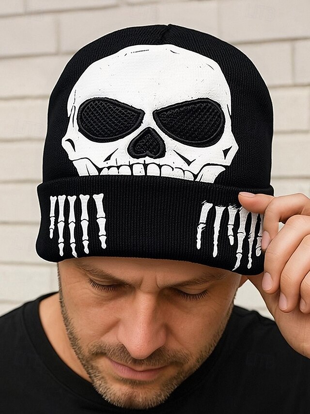 $14.99 - Men's Reflective Skull Beanie – Polyester Knit with Skeleton Print, Glow-in-the-Dark Effect – Perfect for Halloween and Casual Wear 2025. Shop for cheap Halloween Accessories online? Buy at lightinthebox.com on sale today!