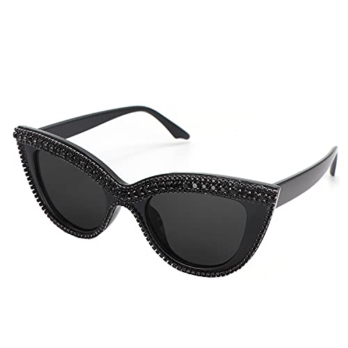Cat Eye Sunglasses Bling Rhinestones Crystal Black Plastic Frame Eyewear 5