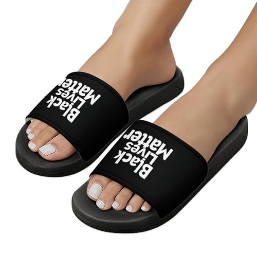 Black Lives Matter House Slippers for Women Men Lightweight Open-toe Slide Shoes for Bathroom Swimming Beach