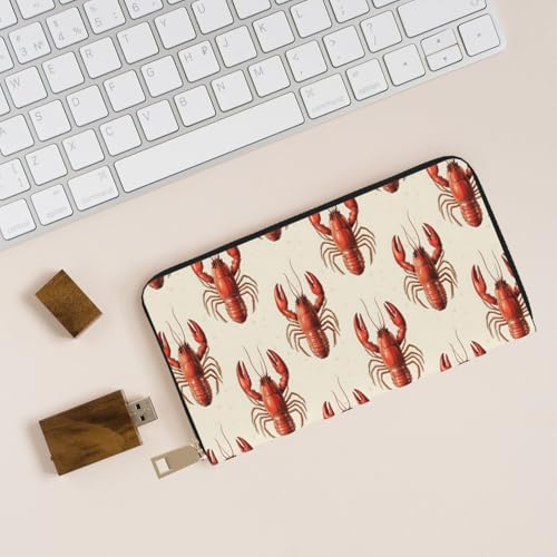 HOT ! Realistic Lobster Print Wallet Women, Leather Bifold Multi Card Wallet, Long Purse Women's Wallets
