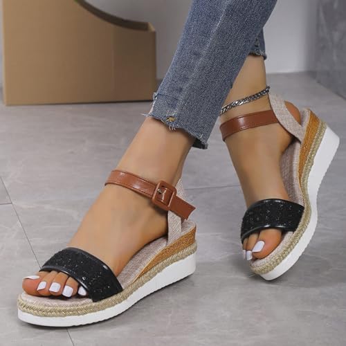 More information about Open Toe Buckle Ankle Strap Espadrilles Flatform Wedge Casual Sandal Espadrille Low Heel Sandals 2025 Close Dressy Summer Platform Leather Elegant Flats Girls Flower Girl Heels Flat Shoes