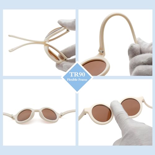 LIU·WEN Cute Round Baby Sunglasses Polarized 3 Pack - Flexible Frame with Strap for Toddler Newborn Infant 0-24 Months