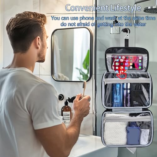 Portable Hanging Travel Toiletry Bags for Men Women Leather Toiletry Bag Waterproof Clear Toiletry Bag Large Organizer Bag for Toiletries 6